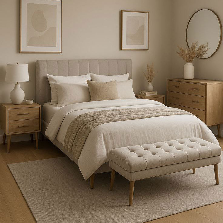 اقلام تشکیل دهنده:تخت خواب دونفره سایز ۱۶۰(قابل اجرا در سایز ۱۲۰،۱۴۰،۱۸۰)+میز آرایش،آینه،صندلی+۲عدد پایتختی+نیمکت